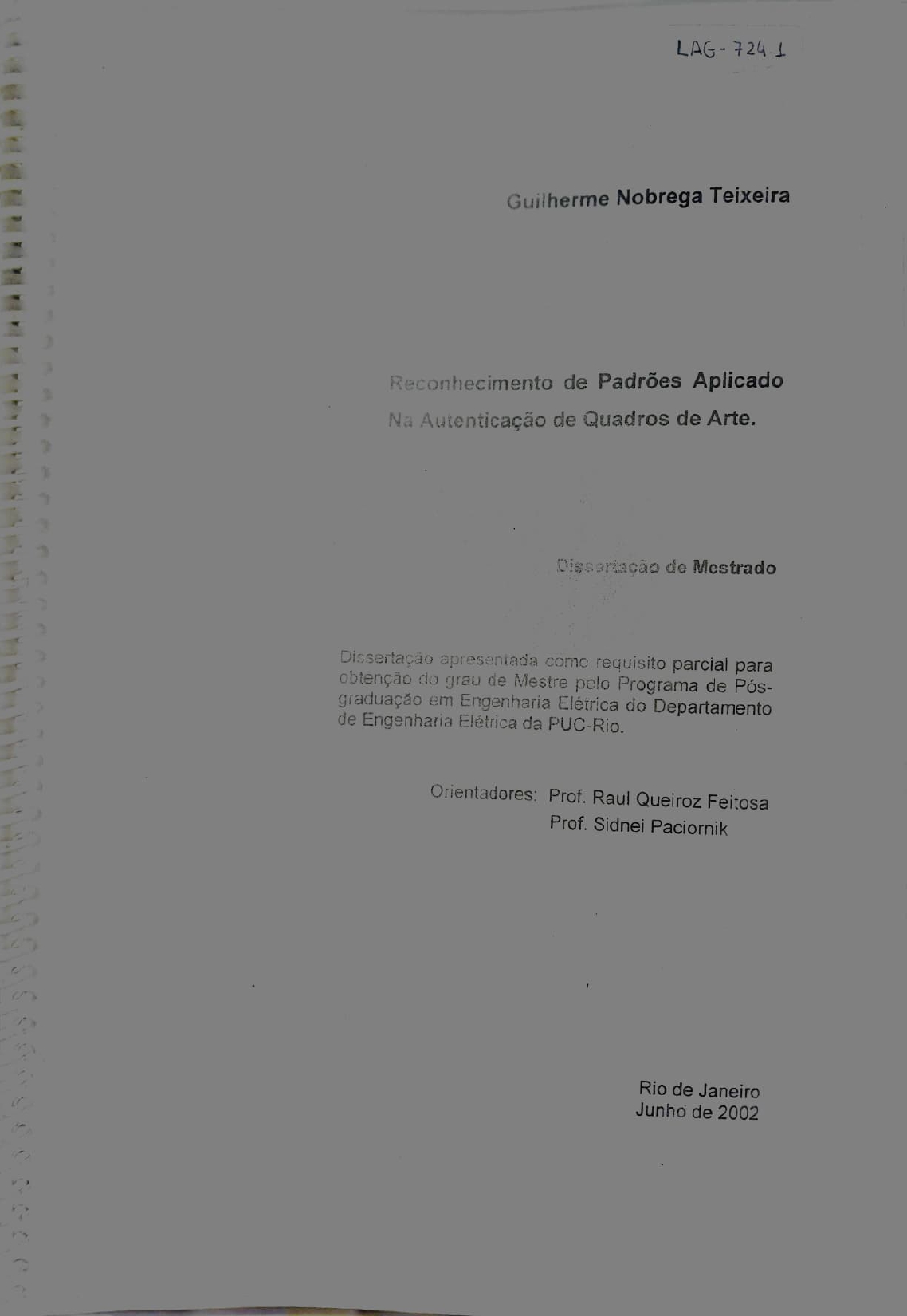 Reconhecimento de Padrões Aplicado na Autenticação de Quadros de Arte